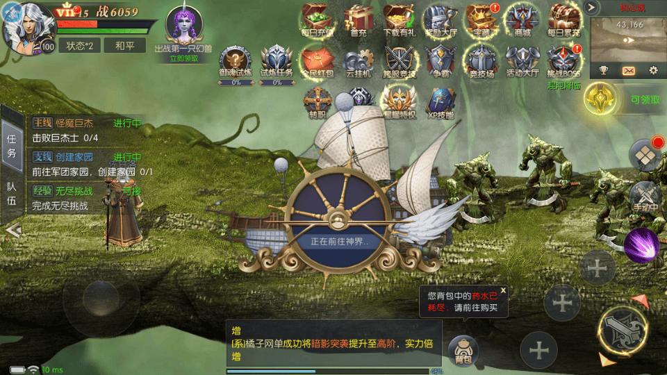 3.修改上线第一个任务直升100级+VIP15【去除主线任务赠送的稀有道具同步官方】